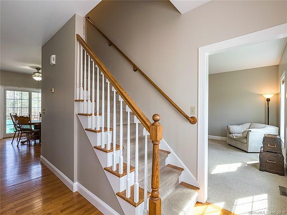 Custom Built Colonial located close to Rtes. 44 & 6 and minutes from Rtes. 384 and 84. Well maintained home featuring 4 bedrooms, 2 1/2 baths, oversized 3 car garage; all rooms freshly painted, spacious and with 9' ceilings; open floor design on 1st floor; kitchen has hardwood floors, custom cabinetry, plenty of counter space and a large island, generous pantry, sliders to backyard; Great Room is front to back with overhead lighting, custom built-in w/marble surround gas fireplace; dining room is large enough for big family gatherings with hardwood floors; tiled mud room and 1/2 bath and tons of storage space; this home has large windows to allow lots of natural light; upper level includes master suite w/full bath and 6' soaking tub, large walk in closets; 3 more bedrooms with large closets, full bath and large laundry room finishes this level; one bedroom doubles as bonus room with 3 skylights over garage; all baths have tiled flooring; home has central A/C and ceilings fans in kitchen and bedrooms; mechanics have been well maintained; home sits on a lightly wooded, level lot on cul-de-sac; full basement with access from kitchen and garage; above ground pool and built-in ground level granite fire pit for cozy night fires and great times with family and friends; A few minutes drive to both of Coventry Lakes public beach areas and beautiful Coventry Lake! Unbelievable price for this size and location in Coventry! This home offers many more features to enjoy.
