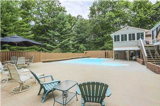 Welcome to 107 Stratford Way! This one-level home has so much to offer! Two living spaces and dining room flow together with gas fireplace and make for easy entertaining. You'll love the Four-Seasons Sunroom with ceiling fan, enjoying year-round comfort looking over the pool and patio area. Huge kitchen boasts plenty of counter and cabinet space, and multiple dining areas: two eat-in bars and room for a cafe table. 22'x26' rec room on the main level has built-in cabinets and could be used as a playroom, man cave, or additional living space. Large master suite features gas fireplace and access to a private heated and cooled hot tub room. Three additional bedrooms on the main level, one with a private full bathroom. Downstairs, a partial basement includes a casual living space with woodburning fireplace and massive home office, which could have multiple uses. This summer, you'll love spending time by the pool and large patio space the owners have created. In-ground L shaped pool with diving board, heater, and pool light sits with plenty of outdoor living space for grill, furniture, dining area, and much more. Low maintenance front yard, three car detached garage, and space to park boat or 4-wheeler complete the outdoor area. Make your appointment to see this home today - at this price, it won't last long!