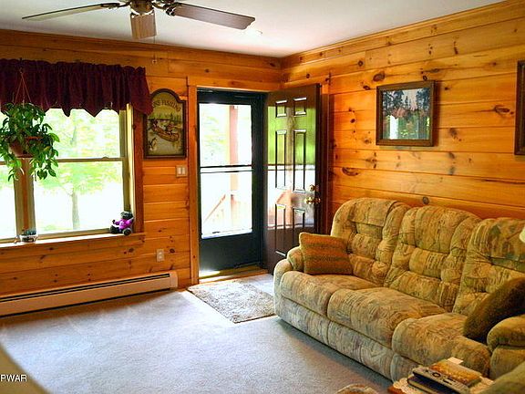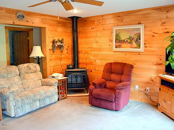 Log sided Ranch home, custom built, with many special touches including an Open Floor Plan with custom Kitchen,3 bedrooms plus den,2 1/2 baths, Dining Area, Master Suite, Sunroom with skylight and stained glass accent. Full Basement with Wood workers delight Workshop and Over sized Garage. Located in the Tanglwood Lakes Community with access to Lake Wallenpaupack and minutes to the Interstate. Wallenpaupack School Dist.