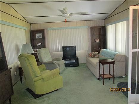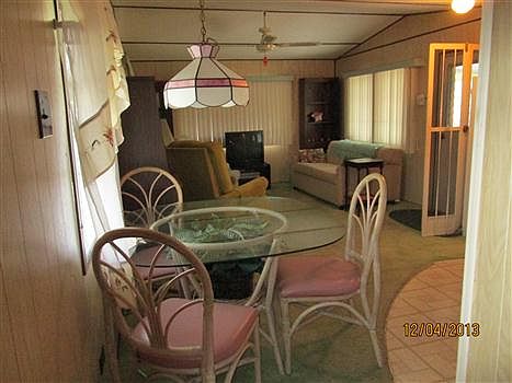 Great price for this one bedroom/one bath home that has a large screened porch for enjoying the Florida sunshine! The screened area also has double doors to store golf cart if desired. Open living/dining/kitchen area makes entertaining a breeze. Stackable washer/dryer in storage shed. Home is furnished and includes queen-sized bed in bedroom. Purchase for yourself or as an investment property as renting is allowed. Seasonal rentals are popular in community. Purchase only the home and lot rent is $640 per month or purchase the share for $47,250 and monthly fee is only $255. Monthly fee includes trash removal, recycling, water and sewer, lawn mowing and edging. Orange Harbor is an over age 55 resident owned community located close to shopping, restaurants and beaches. Don’t miss this great buy! Offers welcomed! Special incentive if you purchase this home: Lot rent is frozen for two years! Pay 2014 rates through 2016! Incredible!