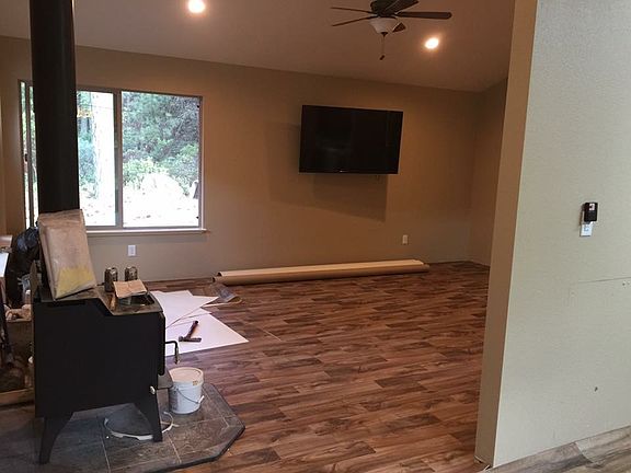 Great family home. 4 bedroom, 2.5 bath, living room, family room, and small office/work room. Home rebuilt from frame up in 2015 after fire. Garage area rebuilt into living space. Lots of trees, treehouse with a slide, and playground on property.