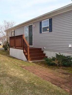 Welcome Home to Sunrise Ridge Estates! Fantastic flowing floor plan with spacious rooms on all one level! Over 1500 square feet of living area will be yours to enjoy. Light, bright and airy! Huge living room opens to dining room. Kitchen with tons of cabinets, counter space including an island/breakfast bar, all appliances will stay for buyers enjoyment and a roomy eating area with sliders leading out to deck and side yard with shed to remain. Two generous bedrooms and a HUGE master with walk in closet an d master bath! Laundry/utility room. Cathedral ceilings throughout. Monthly lot fee includes taxes, water, sewer, refuse removal and snow removal from street. Call now to become a part of this wonderful community.