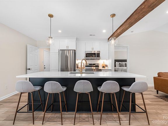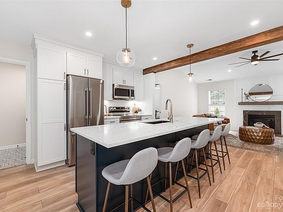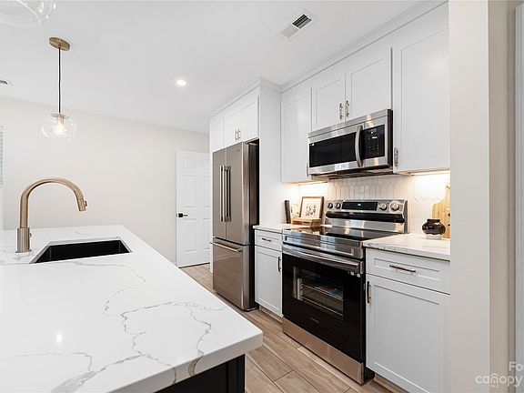 Incredible opportunity to own this stunning, fully updated three-bedroom, two-bath home in desirable Mooresville, NC. As you enter the home, you are greeted with an open floor plan that seamlessly ties the kitchen and living area together. The gourmet kitchen features new stainless steel appliances, quartz countertops, and custom cabinetry. Beautiful luxury vinyl plank throughout the entire home makes cleaning a breeze. The primary suite is conveniently located off the living room and features, a walk-in closet, tray ceilings, and a fully updated bathroom with luxury tile throughout. Step outside on to your beautiful new patio where you can relax in private in your fully fenced-in yard. Updates also include brand new roof and gutters in July 2023. All within minutes to popular stores, restaurants, and entertainment that Mooresville has to offer.