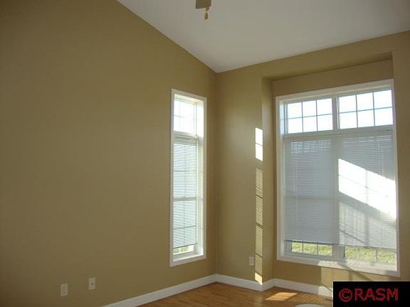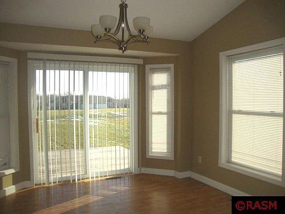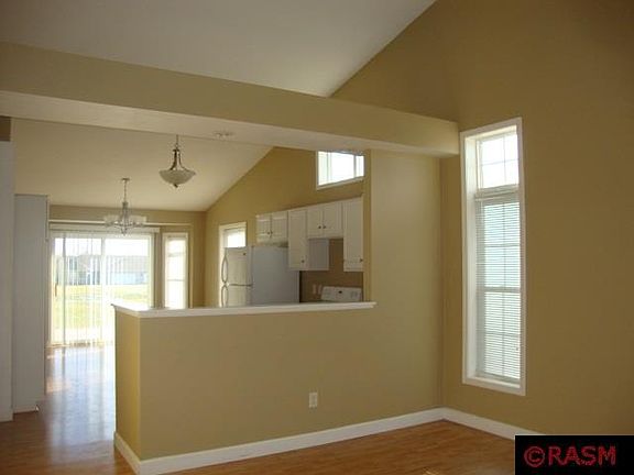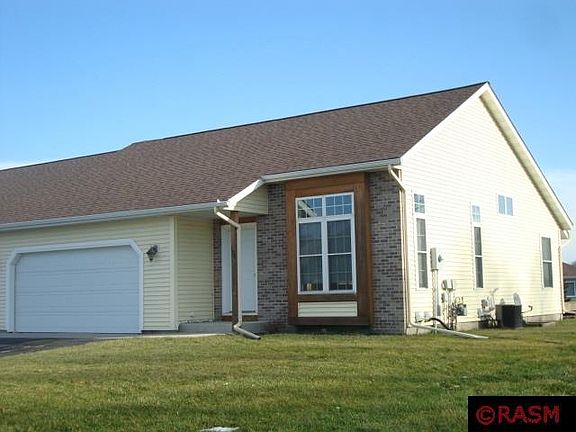 Townhome with only one common wall; open & airy living room with vaulted ceiling, 1/2 wall to kitchen and dining; kitchen with ample cabinets, center work island, range, refrigerator, dishwasher & disposal included. Dining area with bowed area & patio doors. Main floor laundry; 2 bedrooms; full bath. Full basement with egress windows - ready for future expansion. Attached double garage. Vinyl siding. New shingles in 2010, in-ground sprinklers. Association dues $130/month. Currently rented for $1000/month, leased until July 31, 2016; licensed for family or 2 unrelated. Tenants pay utilities. Adjacent unit (105) also for sale and has rental license.