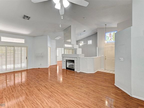 Welcome to this bright & airy 2BR, 2BA single-story townhome in a secure gated community located in Green Valley. Enjoy resort-style amenities including a clubhouse, sparkling pool/spa, gym & stylish community lounge. Inside, vaulted ceilings, plantation shutters, ceiling fans & laminate wood floors create a warm, inviting space, with tile in the kitchen & baths. The spacious living & family rooms are separated by a cozy two-way fireplace, perfect for entertaining. The kitchen offers tile counters, track lighting & a walk-in pantry. Both bedrooms feature mirrored closets; the primary suite includes dual closets & a double-sink vanity. Step outside to a private, low-maintenance backyard ideal for relaxing. The attached 2-car garage has cabinets, & all essential appliances—fridge, washer & dryer—are included! Conveniently close to Pecos Legacy Park, shopping, dining, schools & freeway access. This home offers the perfect mix of comfort, convenience & resort-style living!