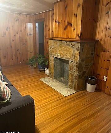 This charming one-level cottage in Erwin offers 2 bedrooms, 2 bathrooms, original hardwood floors, and a cozy living room with warm wood paneling and a stone fireplace. The spacious kitchen features white cabinetry and plenty of counter space, and the enclosed sunporch adds extra storage or hobby space. The home includes central heat and air as well as a washer and dryer. Outside, enjoy a level yard with beautiful mountain views and a detached garage for parking or storage. Located in peaceful Erwin, you will be near downtown, the Nolichucky River, local parks, restaurants, and shopping. This property also offers quick access to I-26, making it an easy drive to Johnson City and just over an hour from Asheville, NC. Rent is $1,500 per month, and pets are permitted with a $500 pet fee. Call listing agent to schedule a showing!