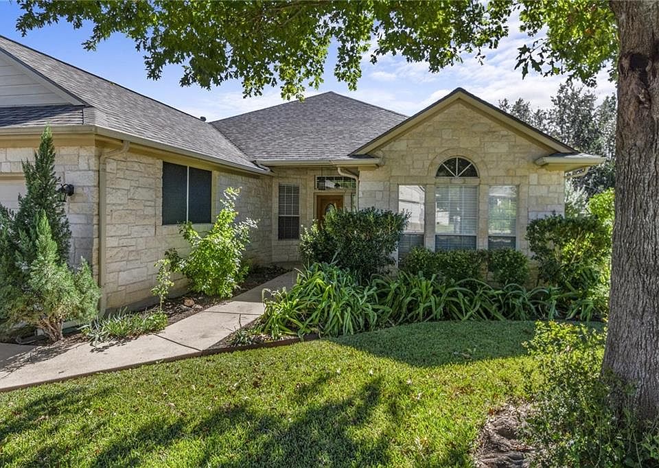 Beautiful oak floors throughout this home makes it warm and welcoming. Clean, Clean, Clean and ready to move into. As you walk in the front door there is a nice art niche. Second bedroom is split but next to the full second bath. The office is in the front of the home with convenient access to the front door. Nice landscaping surrounds the home plus there is an evergreen privacy hedge in the back yard. The open floor plan is inviting for family and guest get togethers. Texas Traditions is a 55 and older neighbor hood with quiet streets for those who like to walk.