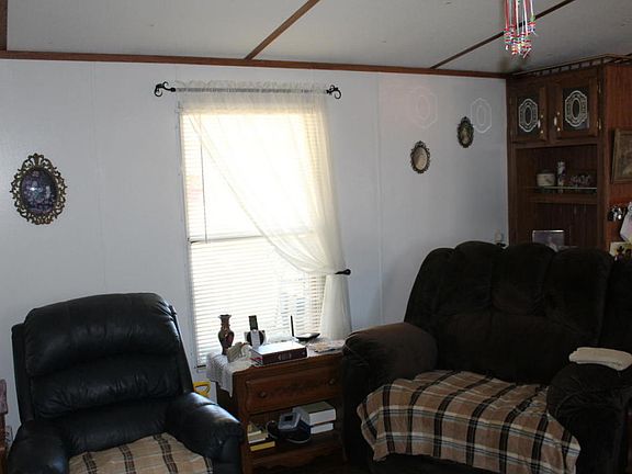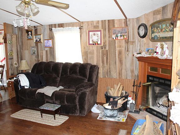 You need to see this cute single wide mobile with a sun room addition on the rear. Owners have used unique decorating in the living room with wood touches. Old barnwood, cedar in the sunroom throughout. The 3 BR, 2 BA home has a wood burning fireplace in the LR and a wood stove in the sunroom. It also has FA electric heat and c/a. There is a newer covered front deck with ramp and a 12x12 storage room, too. The detached garage is 30x40 and there's a small storage building with pressure tank, and another storage building. Level lot with mature trees and sits off the main road. You will love the peace & quiet and country living!