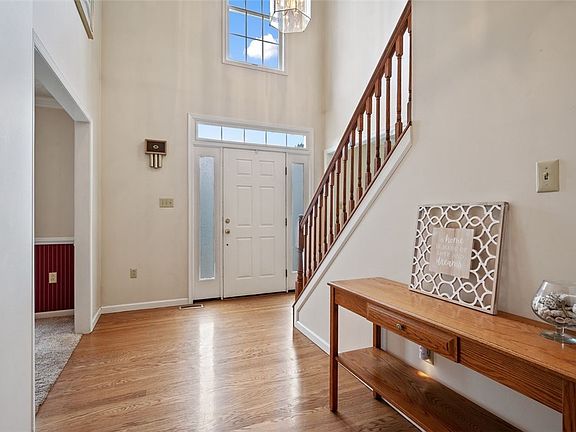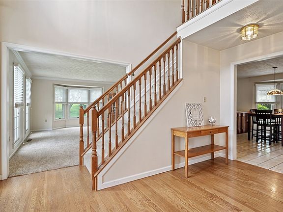 Attractive Colonial in Desirable Woodland Ridge Community Offers Nice Curb Appeal! Step inside to the beautiful two-story entry w/ hardwood floors. Flowing open floor plan offers great sight lines throughout main level. Formal living room w/ French doors leads to family room featuring gas log fireplace flows to eat-in kitchen w/ center island & large pantry. Main level complete w/ formal dining room, powder room & convenient first floor laundry. Retreat to spacious owner's suite featuring vaulted ceilings, walk-in closet, ensuite w/ dual sinks, step-in shower, & jetted tub. Three additional, generously sized bedrooms w/ large closets & full bath are found upstairs. Lower level is finished w/ full bath for the perfect game room space or private guest room. Rear door from kitchen leads to covered 20x12 deck & patio. Plenty of space for pets & play in the level side yard. Amish built shed offers additional storage. Great location near major highways, airport, shopping & restaurants.