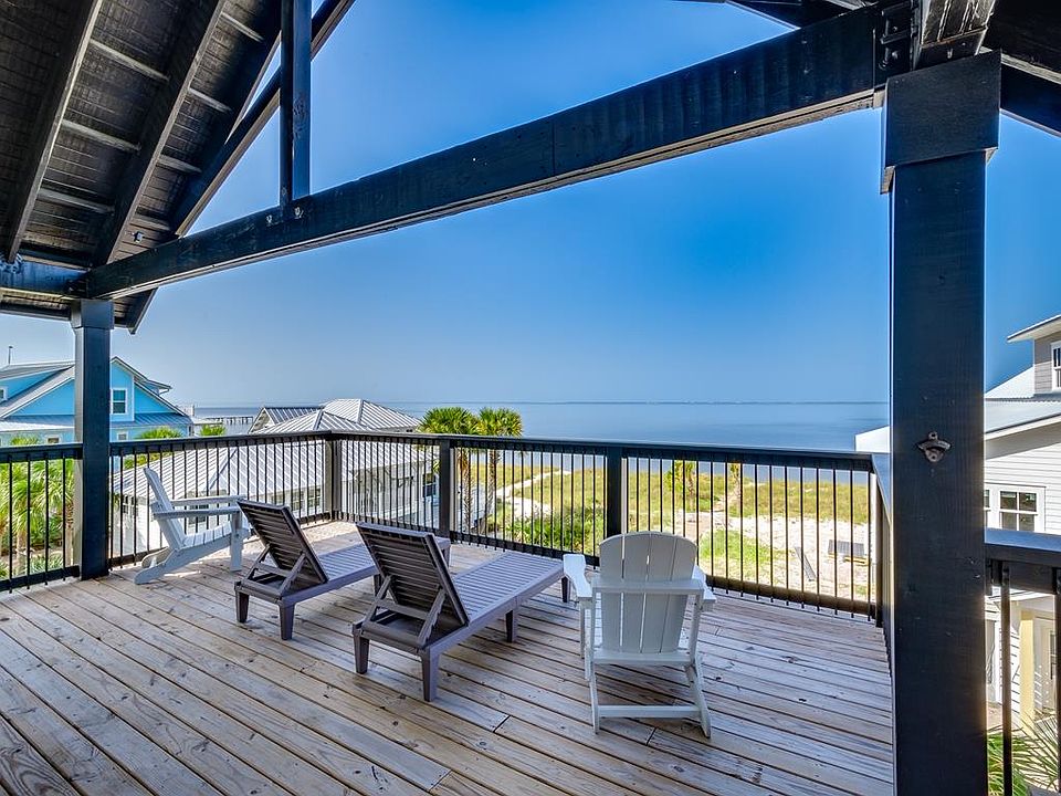 Welcome to “Magnolia by the Sea” - your coastal retreat in the premier gated beach community of Windmark Beach. Newly constructed in 2022, this tasteful home features deeded access to Windmark Beach just steps outside your front door! Magnolia by the Sea was specifically designed to incorporate panoramic water views and stunning sunsets. With ample natural light and an open and airy floorplan, this home is perfect for entertaining in modern style. TWO primary bedroom/en-suite bathroom combinations - one on the main level and another on the upper level that boasts breathtaking views of St. Joe Bay. The remaining two upstairs bedrooms each incorporate beautiful en-suite bathrooms. The only shared bathroom in this house is the half-bath on the main living level. Perhaps the best feature of this house is the design that incorporates breathtaking views and generous outdoor living spaces with a covered open deck and dining area on the main level and another partially covered deck on the upper level. Eighteen feet of sliding glass doors seamlessly blend the outdoor and indoor spaces. Descending the waterside stairs, you're greeted by a wooden walkway directly to the private white sandy beaches of Windmark Beach - Magnolia by the Sea is one of only 15 homesites in Windmark with direct deeded access to a walkable beach - no seawalls or rock walls on this beach! Shopping and dining are a short walk away in the Windmark Town Center or a few minutes by car to the quaint town of Port St. Joe. For the boaters in the family, there is a brand new state-of-the-art marina just a short drive away. This home has never been in a resort rental program, however short-term rentals are allowed in the neighborhood. Come visit Magnolia by the Sea and experience the finest of coastal living on Florida's “Forgotten Coast”.