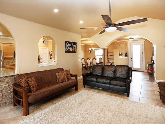 Beautiful 3BR 2BA home in Plainview school district. You'll love the gorgeous tile work throughout the home and you'll fall in love with the rounded design of the doorways and bathroom fixture enclosures. The large living area overlooks the back yard. The kitchen features beautiful granite counter tops with brick back splashes. There is ample counter top space, cabinet space, a center island, and a pantry. The kitchen/dining/breakfast area and the snack bar area overlook the back yard. The formal dining area is large enough for your dining table plus dining furniture. The utility room is conveniently located near the master bath and has a large sink area with plenty of cabinets. The master bedroom is spacious and has a ceiling tray; the master bath has a whirlpool tub, a separate large shower, and a water closet. A mother-in-law floor plan separates the master suite from the other two bedrooms. This property is 2.19 acres and is zoned rural residential.