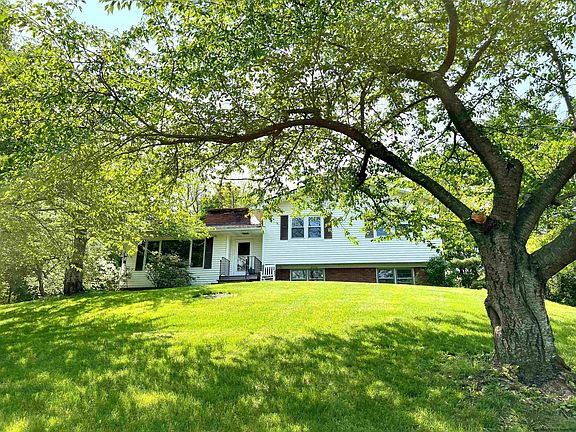 Highest and Best by noon Monday, May 15th. Welcome to this charming Mid-Century Ranch set up and back from the road and surrounded by beautiful mature trees. The home is 1,491sf and has 3 bedrooms and 1 bath that are just 5 steps up from the main living space. Additional office space downstairs as well as a sunroom with a fireplace ready to be brought back to life, add over 600sf to the home. The kitchen is open to the dining room and connected to the living room through a 3 sided fireplace. Solar panels on the roof help with savings especially in the colder months. The backyard is mostly private surrounded on two sides with tall lush greenery and is a perfect place to entertain. The home is minutes to Kingston's Historic Rondout Waterfront for dining and shopping and even closer to the Village of Port Ewen for bites to eat like the best bagel sandwich at Smith's Store. Close to wonderful hiking and bird watching spots like the Esopus Meadows Preserve and Black Creek Preserve, both which lead to stunning views of the Hudson River, this location has it all. The home has many mid century details like the 3 vertical windowed front door, the clay stone entryway, and the original wood floors. Some TLC is needed here, but this is a great opportunity to own a wonderful home at an excellent price.