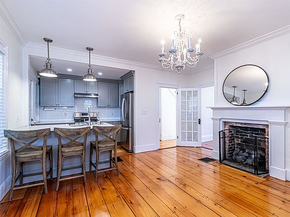 This exceptional 4BD/2BA townhome in Portsmouth's desirable Little Harbour neighborhood features original wide pine floors, crown molding, and new designer finishes throughout. Built in 1870, this home has been lovingly renovated and kept beautifully updated. The sun-drenched first floor showcases a living room with soaring ceilings and gas fireplace, elegant dining room with custom built-ins and a second fireplace, and the chef's kitchen with premium stainless appliances and quartz countertops — all flowing to an enchanting sunny porch with panoramic views of the unusually-large stunning private garden nestled behind the house. The second floor offers a custom marble-topped full master bathroom featuring spa-like finishes, double sinks, and convenient hidden washer/dryer, plus a second full bath with classic clawfoot soaking tub. At the top of the hidden third floor staircase await two additional cozy, private bedrooms and abundant closet space. The updated house systems, partial-finished large basement, and whole-house water filtration with reverse osmosis drinking water will keep you comfy all year long. Modern amenities include a Nest smart system and radiant heated floors in both bathrooms — perfect on a chilly winter morning! Outside, your private oasis awaits with a fully-fenced backyard perfect for entertaining — or pets! Unbeatable location — close to downtown, parks, Music Hall, shops, and schools. Pet-friendly!