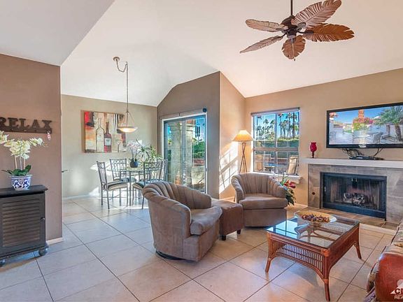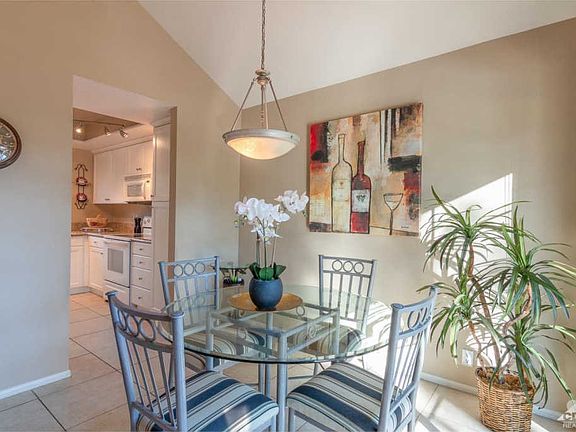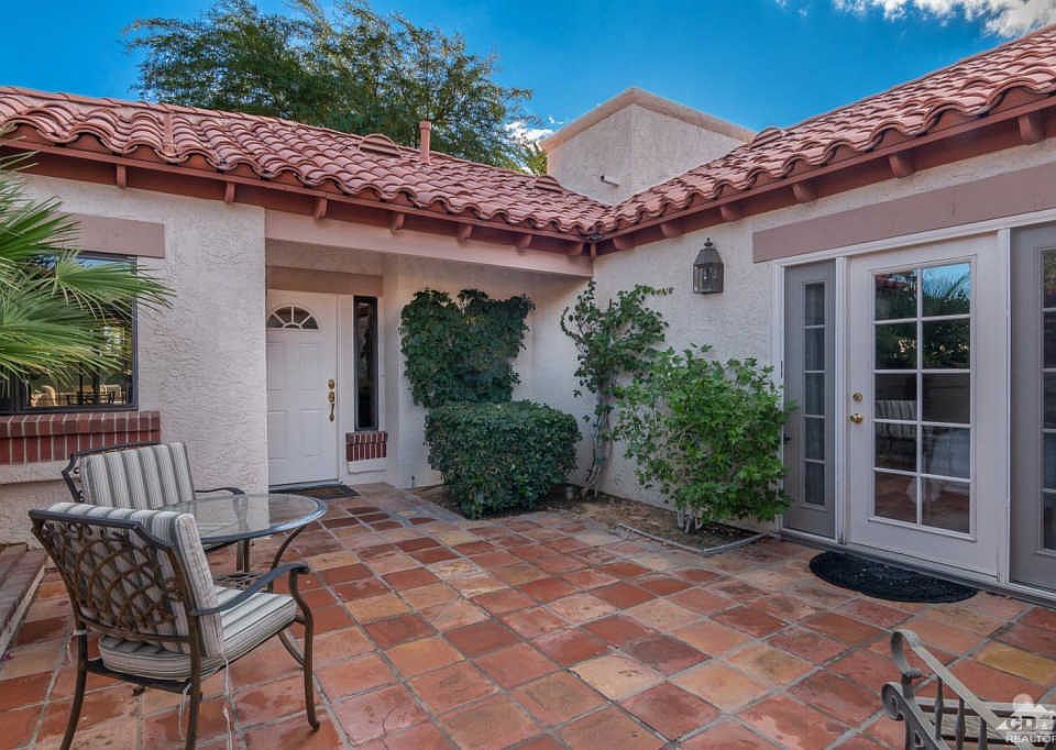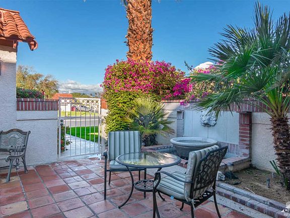 Totally charming, remodeled, south-facing back patio, AND single level in the original section of Desert Falls. As soon as you enter the delightful front courtyard of this cottage-style condo you will be entranced and ready for the best of desert living. The saltillo tiled courtyard is the perfect place to enjoy the brilliant blue sky and attractive fountain. The enchantment continues inside with new flooring, a remodeled kitchen, newer furnishings, and updated baths. High ceilings and french doors in every room create a light and bright retreat. The south facing back patio is lush and sun drenched throughout the day. Homeownership includes play on 9 lighted tennis courts and an updated fitness facility. The semi-private Desert Falls Country Club offers pay as you play or join as a member. The clubhouse is open to the public. Centrally located within the valley, Desert Falls is located within walking distance of restaurants and retail and easy I-10 access.