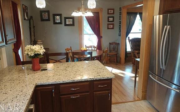 WOW... NEW PRICE ! Completely remodeled & updated! Just move in to this 2-3 bedroom home & relax, the work has been done! The upgraded kitchen includes granite countertops, solid wood cabinets, glass tile backsplash and stainless appliances! You will love the open concept between the kitchen, dining area & living room. There is a 15' x 16' room with fireplace that can be used as a bedroom or family room. The natural wood trim and hardwood floors on the main level have been totally restored. Upstairs there are two bedrooms, a spacious full bathroom with separate tub/shower and a double vanity. The full basement houses the forced air furnace and has toilet/water hook-ups installed. The windows on all three levels of this home have been updated. The outside space is Awesome with an attractive wrap around front porch, spacious double lot and partially fenced side yard that is perfect for many outside activities. Don't miss your opportunity to view this 'Classic Older Home'