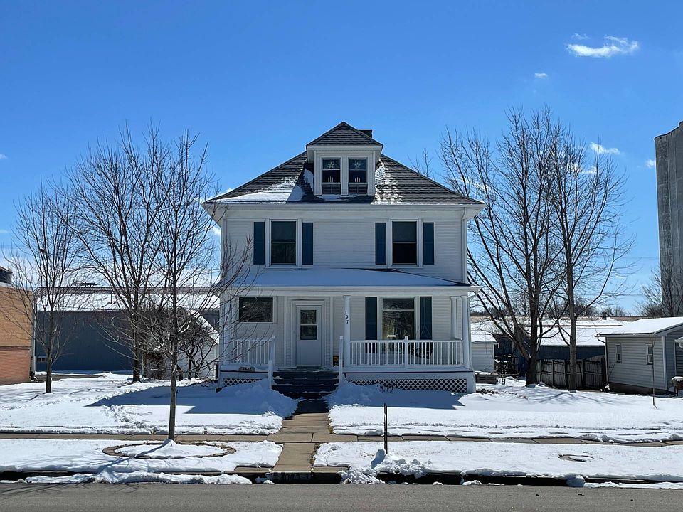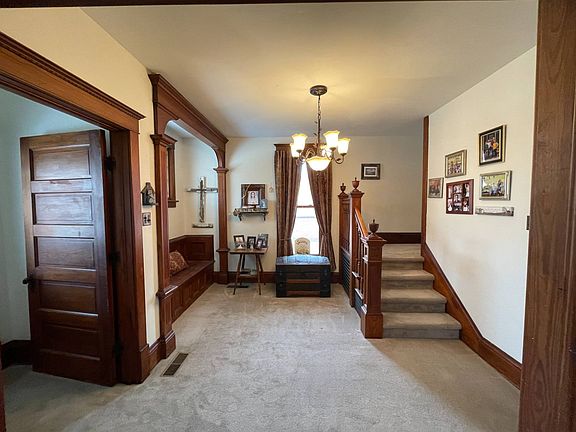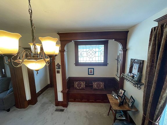 This is a beautiful, move in ready 4 Br, 1.5 Bath home that has a gorgeous front foyer w/open staircase, stain glass windows, bench seat, beautiful wood work, pocket doors, updated kitchen w/island, a formal dining room w/gas fireplace, new CA/CH units, newer roof, windows & siding. The yard is just as beautiful w/brick patio, 2 oak trees & 3 maple trees, cement driveway that also serves as a basketball court, one car det. garage & one garden shed/garage. This home has so much to offer and is close to downtown and the city park. Call for your appt. today.
