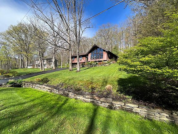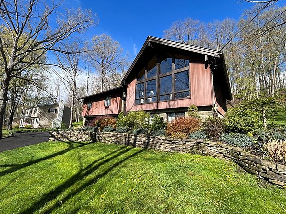 Contemporary home tucked away in the hills of a private development. Skylights and large windows off the updated kitchen allow for lots of natural light. The kitchen boasts granite counter tops, double ovens and stainless-steel appliances. Cathedral ceilings throughout with the focal point wood burning fireplace. 3 bedrooms and 2 full baths on the first floor with a private bedroom, half bath in the lower level would allow for a great in-law suite or guest room. Lower level also has additional storage space, family room and a laundry room off the 2-car garage. Lots of additional storage space.