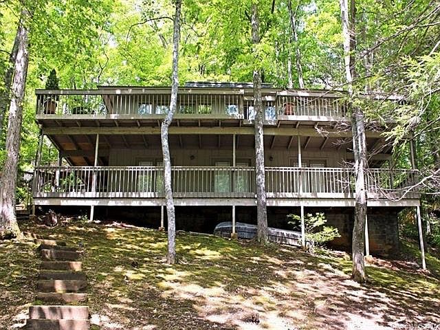Wonderfully updated lakefront home on Bald Mountain lake. Sloped ceiling Great Room with stone fireplace. Coffered/beadboard kitchen ceiling has double sinks & breakfast bar. Two walls of sliding doors open to wrap-around decks. Lower level has its own covered deck and all bedrooms open to deck. Tastefully updated baths with granite and tile. Own boat Pier on Bald Mountain Lake with Rumbling Bald Resort access to amenities.