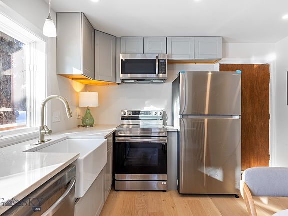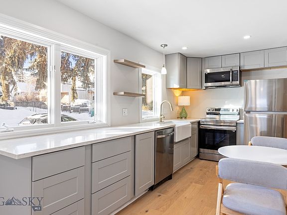 This charming 4-bedroom home in downtown Bozeman has been completely renovated and is ready for you to move in. Located just steps from Main Street, this 1950s home was taken down to the studs and rebuilt with modern standards. Upgrades include wide-plank engineered oak flooring, new electrical wiring and panels, plumbing, lighting, interior and exterior paint, and completely remodeled kitchen and bathrooms with new appliances, fixtures, layouts, and stone countertops. The home also features updated utilities and new insulation. Situated on a large corner lot with R3 zoning. The next owner could use it as a single-family home or investment property, or take advantage of the spacious 7200 sq ft lot for potential expansion or further development. With a large two-car garage, huge covered patio, and beautifully manicured lot, 107 W Short offers something for everyone seeking a downtown property.