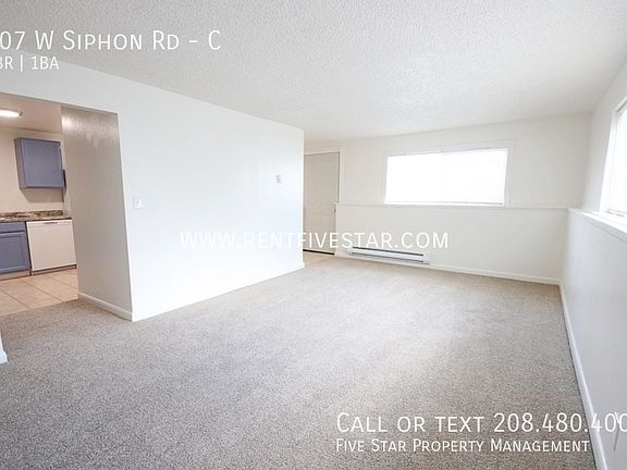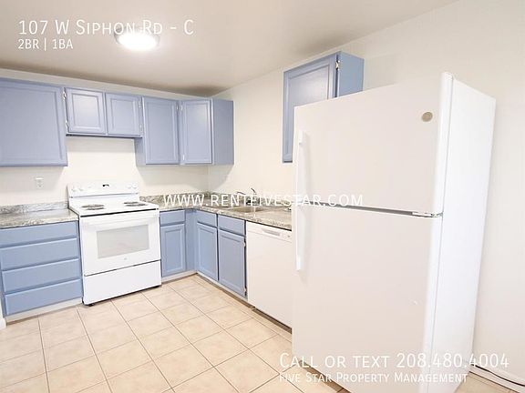 Spacious and Bright 2 Bedroom Apartment! This 2-bedroom, 1-bath apartment offers a clean, modern feel with fresh white paint, abundant natural light, and a versatile neutral color palette that complements any decor. The primary bedroom features double closets, giving you plenty of storage space and everyday convenience. The kitchen is both stylish and functional, with beautifully painted cabinets and all the essential appliancesincluding a dishwasher to make cleanup a breeze. Off-street parking is included, adding to the ease of daily living. Enjoy worry-free landscaping and a prime location near Bicentennial Park, with quick access to major roads that connect you seamlessly to anywhere in the Pocatello/Chubbuck area. Don't miss your chance to live in this well-located and comfortable apartment! Double Closets Electric Forced Air Heating Electric Zonal Or Baseboard Heating Landscaping Included Visit Our Website Rentfivestar.Com Washer And Dryer Hookups