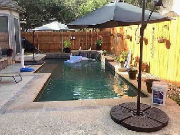 Spacious open and bright home complete with pool! Open floor plan and filled with natural light. Updated kitchen boasts breakfast bar & nook, granite counters, SS appliances, center island, cooktop, built in microwave & oven, & tons of storage. Formal dining easily accessible. First floor master provides privacy with sitting area, dual vanities, garden tub, shower, & walk-in-closet. Secondary beds up. Flex space up with bar. Dedicated office space down. Stunning private backyard with covered patio & pool.Will offer paint allowance!
