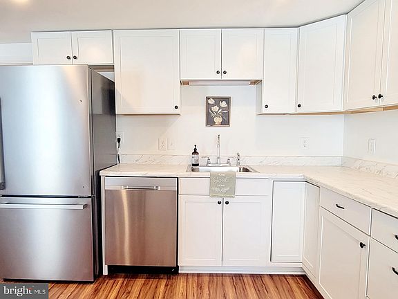 Beautifully renovated two story farmhouse with large detached two car garage right in the heart of Smithsburg. Brand new kitchen with all new stainless steel smart appliances. Two modern updated full baths. First floor laundry and new luxury vinyl plank floors throughout the entire home. Enjoy peace of mind with an all new new roof, gutters, siding, plumbing and electrical (all up to code). All new replacement, energy efficient windows. The entire house is fenced in. The backyard includes privacy fencing and a new patio. Two driveways flank the property allowing access from either side of the home. Smithsburg school district and nearby parks. No HOA. Easy access Rt 70.