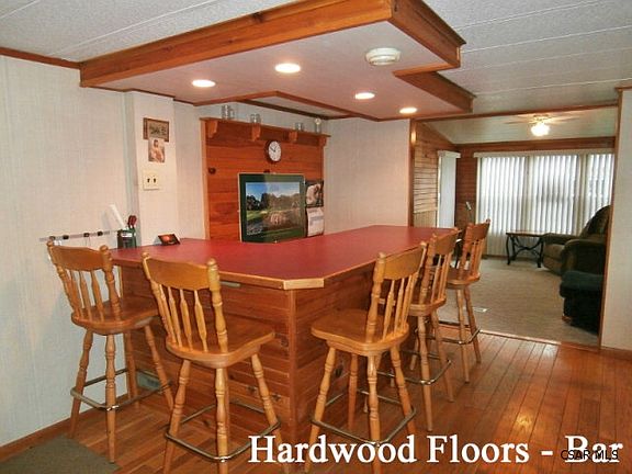 North Star schools.. Move-in ready vinyl sided home with 3 bedrooms, 1 bathroom & a 2-car tandem garage. Spacious living room with knotty pine walls, updated eat-in kitchen with oak cabinets, appliances included, hardwood floors & a bar, 3 bedrooms with plenty of closets, updated full bathroom, 1st floor laundry & a bonus room. Outside are 2 covered porches, patio & a large shed. This is a mobile home that has been added on & has a foundation & a basement.