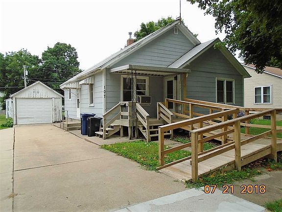 Nice starter or retirement home. 2 Nice sized bedrooms. Updated Kitchen and main floor bath w/Oak cabinets. Bedrooms and Living room all are original oak floors. Interior doors on main have been replaced with oak doors. Windows have been replaced. Two single car garages with garage door openers in both. Handicap ramp can stay w/home or be removed. Deck off kitchen and front entrance. All appliances stay including washer and dryer. 3/4 bath in basement. Has sump pump and water softner. Nice yard.
