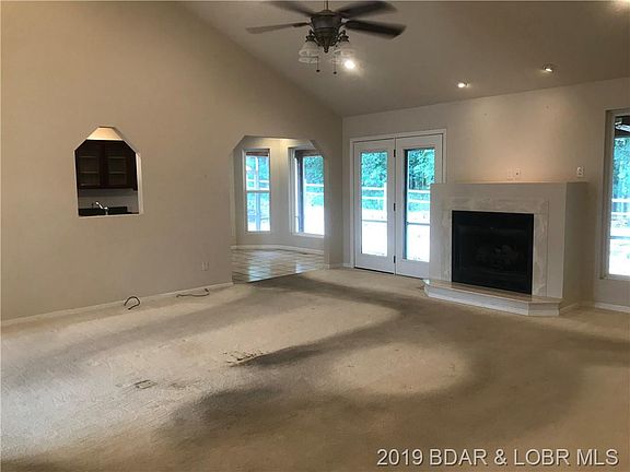 One Level Ranch just outside the City Limits of Camdenton. Maint. Free Exterior, Nice Yard, Private Setting, Paved Streets, Screened Patio backs up to Wooded Area. House has 3 Bedrms., 2.5 Baths, Large Living Room w/ Vaulted Ceiling & Gas Fireplace.. Formal Dining can also be an Office. You will love the Quiet neighborhood with close access to Town and New Hwy. 5. Tile Floors in Entry, Kitchen, Dining Area &Bathrooms! Covered Front Porch. Storage shed and Storage Area above Garage w/ Ladder, and Lights !