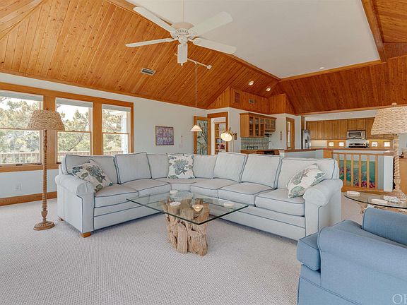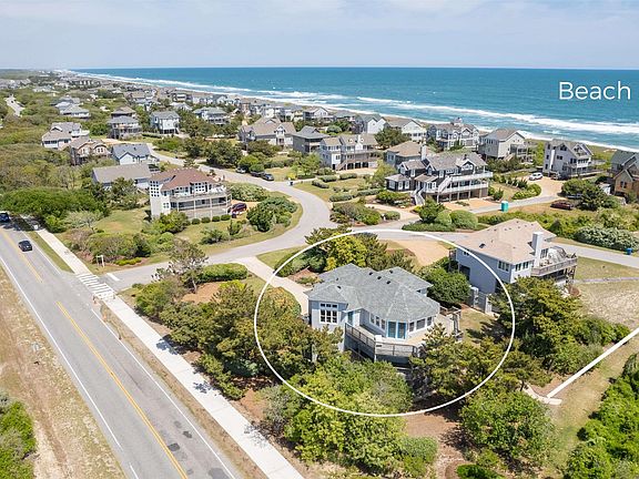 OCEAN, SOUND & POND VIEWS with amazing Sunrises & Sunsets are there for you everyday at this Authentic Outer Banks 3,056' beach cottage located just two lots off the ocean. BEACH ACCESS IS ONLY 180' AWAY AND A STRAIGHT WALK AHEAD.  Built with a casual elegance by the original developer of Sanderling for their own use promises a relaxed and coastal lifestyle where entertaining is warm & welcoming.  Upon entry into this bright & airy open concept you will immediately sense the meticulous attention that has been given to every detail.  Sea La Vie features a reverse floor plan with a sea of windows throughout the great room allowing natural sunlight to fill the entire top floor at any time of day. Great room is impressive with their high vaulted Ceilings that include wood accents & finishes made from native North Carolina species.  Just off the great room you will find a private office/den area with a gas fireplace. Kitchen with separate island, stainless steel appliances, under cabinet lighting and a wet/bar coffee bar off to the side for easy access. Lastly, the top floor houses a large dining room that flows off the kitchen, living areas & powder room.  Mid-level presents a long hallway with hardwood floors and a wall of windows leading to 4 large bedrooms that include 2 ensuites.  All bathrooms throughout the home have been beautifully remodeled in 2017. Primary bathroom has a clawfoot tub & custom tiled shower.  Expansive top & mid-floor decks will immediately become your favorite retreat. Whether you are looking for some sun or shade, you will find it on these decks!  And, as of course you will enjoy the constant hypnotic sounds of the ocean. This impressive 17,000' lot has gorgeous landscaping that was modeled in the natural tradition of the Sanderling community. You will enjoy the quietness of your neighbor to the south, one of Sanderling's beautiful ponds. New Fortified roof 2021 that saves owners $1,000 a year with their insurance.  Carport for 2 cars with a dry entry at the ground floor level of the home. Outdoor shower.  The community of Sanderling is one of the most sought after communities on the Outer Banks.They are well known for Preserving as much of the Natural Beauty of the Outer Banks as possible.  Their amenities include tennis courts, fitness center, nature walking path, sound access. The community also has three restaurants within walking distance, one located in their historic life saving station that serves a delicious  breakfast, lunch or dinner and two soundfront restaurants, the Paper Canoe & Kimball's Kitchen. Enjoying the OBX lifestyle is a breeze with a Walking/Bike path to downtown Duck's shops, restaurants & entertainment right out your front door!  Washer/Dryer 2022, HVAC 2020 & 2021