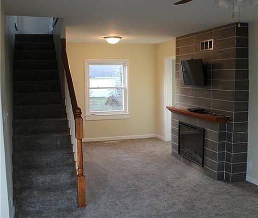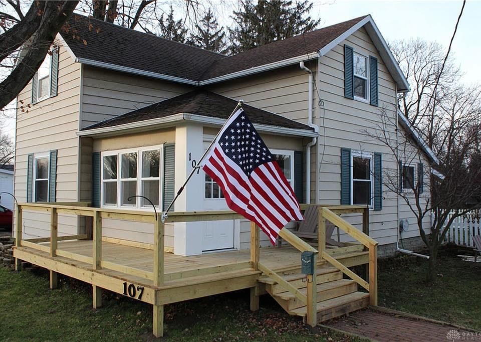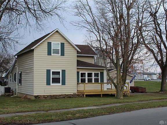 Welcome to your new refreshed Craftsman Style, 1 ½ story home on a double corner lot in beautiful downtown Columbus Grove. This quaint 3-bedroom, 1-bath home features a new front deck, updated kitchen and bath, new built-in electric fireplace, and a fenced-in backyard. Sitting on .24 acres, this 1444 sq ft home has steel siding, updated vinyl windows, new doors, an eat-in kitchen, a mud/laundry room, and a spacious detached two car garage. This move-in ready home has all new carpet and vinyl flooring throughout and kitchen appliances including new stove with over-range microwave, and a new dishwasher. New central air, gas furnace, and water softener. Soak up the small-town atmosphere sitting on the deck, around the backyard fire pit, or in front of the fireplace in this unique home.