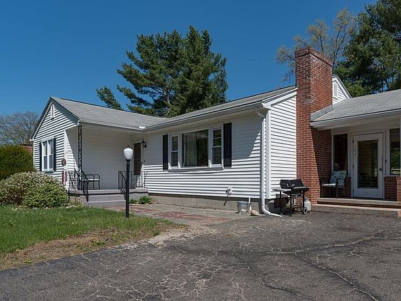 Classic Mid-century 3 BR, 1.5 bath ranch style home set on .79 acres! Lovely porch & front door w/great design welcomes you into this home. Spacious Living Room with fireplace & picture window, kitchen has tile flooring, tons of great cabinet, counter & closet space plus large dining area overlooking yard. Finished breezeway with slate floor opens to backyard & over-sized one-car garage. BUDERUS boiler, Central Air, hardwood floors throughout. The basement with heat & half bath offers 600 plus extra square feet of living space - perfect recreational or family room. In addition, there is a small, finished workshop space in basement. The back & side yard consists of two parcels allowing for plenty of room to relax, play & garden. There are many flowering shrubs & perennials around the property, an exquisite stone wall plus a beautiful Japanese Maple tree at the bottom of the driveway. Handsome, Affordable, Solidly Built & just minutes away from Downtown Northampton!