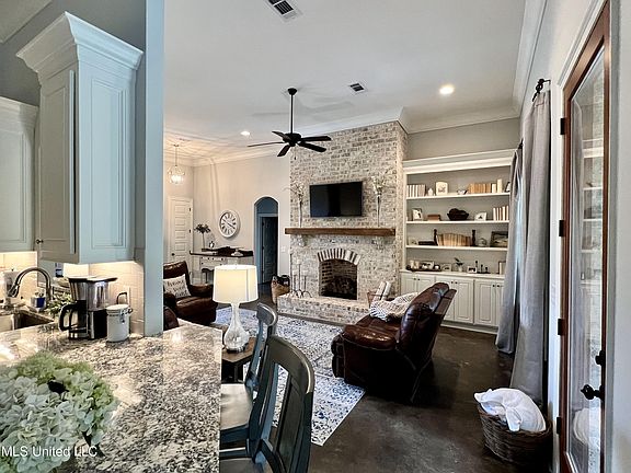 - Beamed Ceilings, Bookcases, Built-in Features, Ceiling Fan(s), Double Vanity, Eat-in Kitchen, Granite Counters, High Ceilings, His and Hers Closets, Kitchen Island, Storage, Walk-In Closet(s), Breakfast Bar