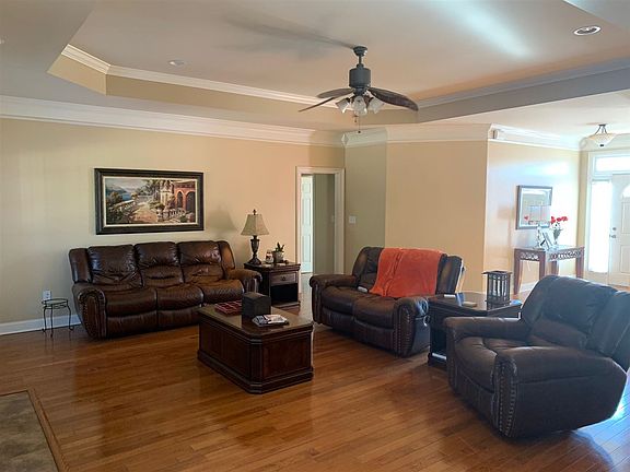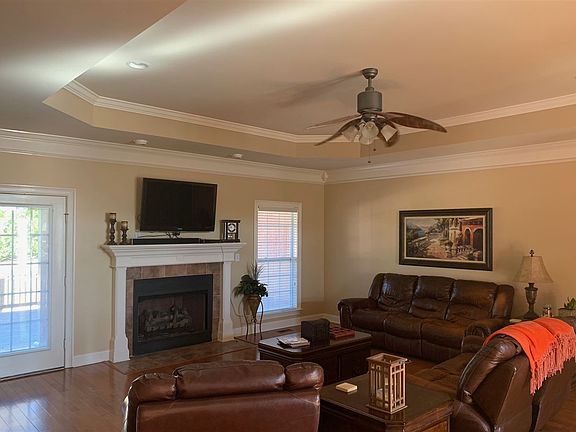 - FAMILY ROOM DESC: Ceiling Fan, Wood Floor, Fireplace, Trey, 10? + Ceiling