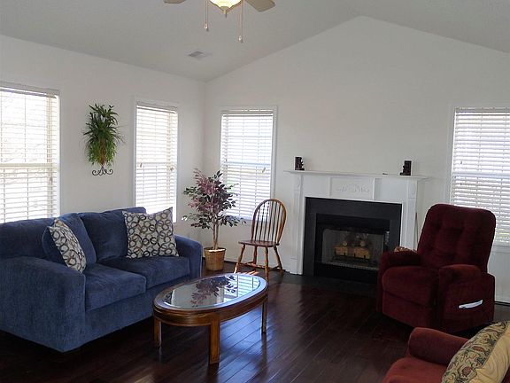 - Living Room: Fireplace, Floors-Hardwood, Ceiling-Vaulted, Ceiling Fan