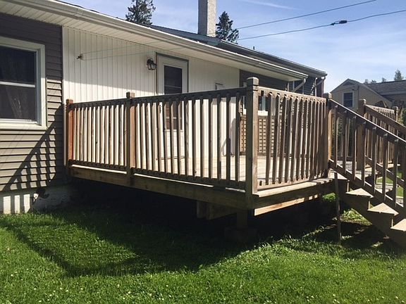 TOWN OF LOUISVILLE. This multi level home has many updates: newer windows, siding, roof, furnace (boiler unit), and brand new water heater. It's situated on a very pretty lot with a wooded boundary in the back. There is an attached garage and a 2 car wide paved driveway. There are 3 bedrooms, all with hardwood floors and double closets. There is a nice family room with new laminate flooring. The living room offers a fireplace with an electric insert (which does blow heat) and a large bay window. The kitchen area is quite large with tons of cupboards and counter space. Something any cook will love is that one of the counters is Butcher Block. The unique "eat-in booth area" is the great place to sit and have lunch. There is also a separate formal dining room which means this home has plenty of space for family gatherings. The bathroom is very roomy as well. From the dining room there is a door that leads out to the back deck. Deck is 12' x 15'6 in size. This home has plenty of closet and storage space throughout the home. This home has that cozy feeling the minute you walk in the door. Truly a wonderful home---be sure to get in quickly to see!