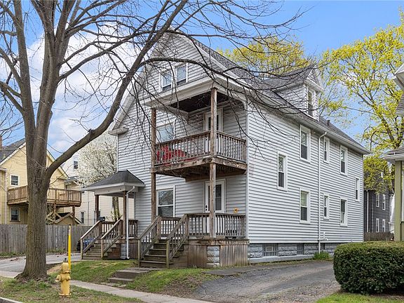 EXCEPTIONAL Duplex in the ever desirable SWILLBURG NEIGHBORHOOD, minutes from U of R, Highland park and Cobbs Hill- a SAFE INVESTMENT into your future! Rock solid bones w vinyl siding & windows, newer roof, off street parking and asphalt driveway to partially fenced yard. Mechanics all recently replaced and SEPARATE HW, FURNACES, ELECTRIC! This 2200+ sq ft home is fully rented (valid C of O until 8/1/25) offering 2br, 1 bath unit each unit; lower unit commands $1300/mo (Year lease end Oct 1, 2023) in wonderful condition, some laminate flooring-well maintained by tenants! Upper unit with SAME FLOOR PLAN at $950/mo (Month to Month) boasts TWO BALCONIES for tenants to enjoy- paint & a month of sweat equity easily rents out for the same amount as downstairs! COIN OP LAUNDRY for BONUS CASH FLOW! Lovely charm throughout with original HARDWOODS, beautiful BUILT IN CABINETRY W GLASS DOORS, CLAWFOOT TUBS! Bonus sq ft waiting for your creativity in partially finished walk up attic! Great buy for your first rental or for