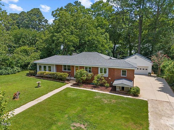 This stunning, one of a kind Raleigh ranch is ready for its next chapter! This home features 3 bedrooms, 2 full bathrooms, new roof (2023), hardwood floors, custom granite countertops throughout, arched doorways, and much more. Updated kitchen boasts custom cherry cabinets with a built-in pantry, natural gas range, pot filler, and wonderful natural light. Primary bedroom ensuite features double vanities, two walk-in closets, and granite shower. The sunroom is the perfect place to curl up with a good book with a custom built-in bookcase, gas fireplace, heated floors, and access to a private tile patio. Beautiful and expansive backyard is nicely shaded by mature trees, garden area, playset, chicken coop, and set-up for an invisible dog fence for your four legged friends. Garden shed features a generator outlet for added peace of mind. Detached two car garage and workshop is perfect for any project you can dream up! The garage features commercial grade cabinets, wood burning stove, EV outlet on a separate meter, and additional floored attic storage. This wonderful home is nestled on a half an acre with no HOA. All of this while being less than 10 minutes to downtown Cary, Fenton, and convenient to everything Raleigh and the Triangle has to offer! Sunroom/study and primary bath additions were not permitted (per measurements: unpermitted space total: 375 sqft; permitted space total: 1,133 sqft; Total Living Area of both spaces: 1,508 sqft).