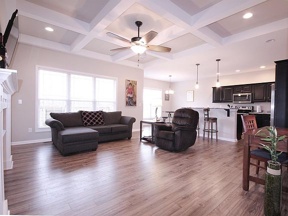 This lovely ranch is just over a year old and still has that new car smell. Enter this lovely home through a large Foyer that flows beautifully into the amazing family room with coffered ceilings, open Kitchen with breakfast bar and Dining Area. The full suite of Whirlpool kitchen appliances convey! Behind beautiful glass French doors you will find the convenient home office/music room/whatever-you-want-it-to-be room. Then there are still 3 bedrooms, a separate laundry room and huge hall closet for storage. The large master bedroom (yes that is a KING sized bed in pics) has a lovely en-suite bathroom with Huge garden tub, 5' walk-in shower and massive walk-in closet. The 2 additional bedrooms are ample size and have never been used. Enjoy your morning coffee on the lovely partially deck and enjoy nature right at your door. The flat yard stretches out into open greenery where you can see deer, birds and mother nature at her finest. Come see this home TODAY!!