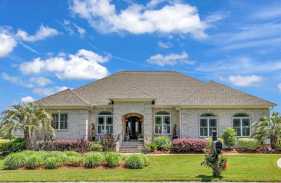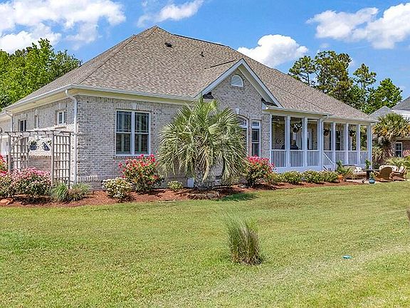 This custom home is a must see! Located in the highly desirable Ocean Ridge Plantation neighborhood, it is the home you have been waiting for. The gardens are filled with beachgrass, palms, roses, and more. A panoramic view and plenty of birdsong await you on the large porch overlooking the 16th green of Lion's Paw, one of four neighborhood golf courses. The beautifully appointed kitchen, which is open to a fireplaced living room and a large dining area, has a granite island that's perfect for social gatherings. This home offers a formal dining room as well as a family room with stone accent fireplace surrounded by custom cabinetry, and a wet bar with granite countertops and a wine fridge. Perfect for entertaining. A split floor plan has the primary bedroom on one side of the home, with custom his and her walk in closets, and a large bathroom. Three more bedrooms and another bath, a laundry closet, and a powder room complete the home. With custom moldings, coffered and trey ceilings throughout, a wrought-iron front door, and beautiful hardwood floors, it's ready to move in. There's also a huge bonus space in the attic with unlimited potential. Ocean Ridge Plantation has great amenities: indoor heated pool, outdoor pool, fitness center, sauna and jacuzzi, tennis/pickle ball courts, a community garden, a banquet room and more. A second amenity center is under construction. In addition, Ocean Ridge has a beach house on the award-winning Sunset Beach equipped for comfort and convenience. Enjoy time on the beach, on the decks, or indoors. Ocean Ridge is home to numerous social activities as well. So there is something for everyone. Once you see this home, you'll want to make it yours. What are you waiting for!
