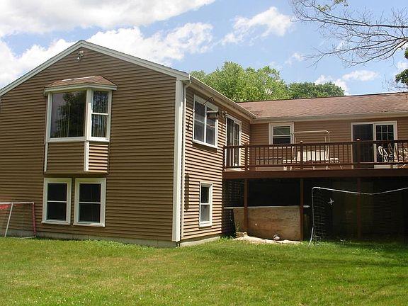 Beautifully updated and maintained expanded 8 rm., 4 bdrm. 2 bath ranch on 3/4 acre lot. New flooring in kit. and dining rm. French doors from dining rm. to deck. Huge master bedrm. with private bath, cathedral ceiling and access to deck. Vinyl sided, newer windows, two car garage and master bdrm. added in 2002. Lower level family room has electric heat. Central air, 200 amp. electric Irrigation system in front yard. Great side street location within walking distance to commuter rail and high school. House is deceiving, must get inside. Open house Sunday January 17, 12-2