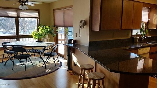 This lovely 2 story features spacious rooms throughout, with open floor plan - kitchen/eating area, office & family room, 4 BR's with massive Master Suite, large windows to back deck over looking stunning wooded, river view and park like setting, features southern exposure year round, 3 stall garage with entrance into mud room or kitchen with parking for 4+ cars, lots of storage, finished family room in basement and more. 2/3 of the roof and shingles replaced within last year.