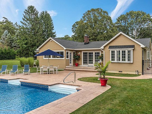 BETTER THAN NEW construction in a secluded, professionally landscaped setting makes this completely renovated, four bedroom ranch a must see! Fully remodeled in 2015, this home features vaulted ceilings and an open floor plan for bright and spacious living. Hardwood flooring throughout, heated in-ground pool with saltwater filtration, floor to ceiling cultured stone fireplace, main level laundry, and a California designed walk-in closet in master bedroom are just a few of the standout features. Additionally, this house has Andersen Windows, GAF Timberline Roof, a tank-less hot water heater, recessed lighting throughout and a finished lower level with plenty of storage. The kitchen boasts Thermador stainless appliances, custom cabinetry w/ granite counter tops, center island, walk-in pantry and wine fridge. A bright sunroom, with porcelain tile floor, offers a powder room that allows direct access to the pool, patio and terrace. Situated on approximately one acre this serene and private setting is conveniently located near the beach, shopping, and within 2.5 miles of the train station and the ferry.