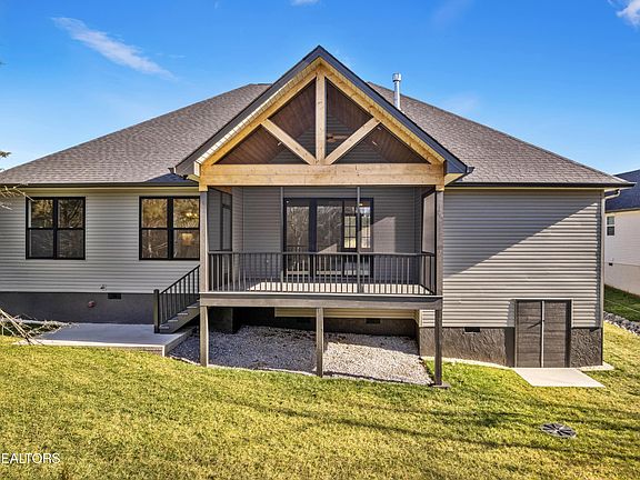 Welcome Home to 107 Yona Way! This beautifully crafted home is built with 2x6 construction, ensuring superior durability and energy efficiency. Situated on a flat driveway with a gently sloping lot, it offers both curb appeal and easy accessibility. Step through the grand double-door entry into a thoughtfully designed split floor plan, providing privacy and functionality. The spacious living room is the heart of the home, featuring a floor-to-ceiling gas fireplace that creates a warm and inviting atmosphere—perfect for gatherings or quiet evenings. The kitchen is both stylish and practical, boasting white shaker-style cabinetry, a natural wood-tone center island, a white porcelain farmhouse sink, and a pantry for convenient storage. A large breakfast area seamlessly connects to the screened porch, accessed through tall sliding glass doors that bring in natural light and a sense of openness. The vaulted ceiling enhances the airy feel, while composite decking, aluminum railings, and steps add durability and a modern touch. An office provides a versatile space for work, study, or hobbies. The primary suite is a private retreat, featuring a tray ceiling and a spa-like bath with a tiled, no-threshold entry shower, a double vanity, and a spacious closet with custom shelving. Additional highlights include extra storage in the tall crawl space, high-quality finishes throughout, and a layout designed for both comfort and convenience. Whether you're entertaining guests or enjoying a peaceful evening at home, this property offers the perfect blend of elegance and functionality. Don't miss the opportunity to make this beautiful home yours!