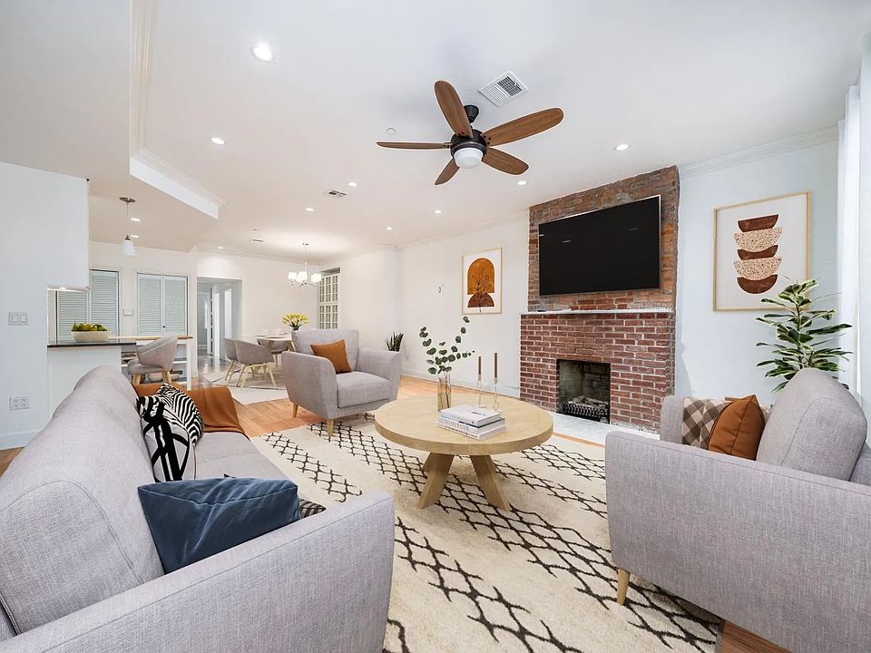 No broker fee. For rent by owner. Location, location, location! Large unit in Paulus Hook/Waterfront with beautiful finishes in the most desirable JC neighborhood! Big two bedroom apartment on the first floor of a quiet four-story brownstone in the desirable Paulus Hook neighborhood near the Jersey City waterfront. 2 bedrooms, 2 full baths. Large backyard space with privacy. Non working fireplace. Custom kitchen includes pot filler, moveable island, armoire refrigerator, apron sink, and stone counters. Built in dining room display case matches kitchen cabinetry. Two full baths, one featuring a walk in shower with rainhead. 5 minute walk from both Exchange PATH Grove Street PATH. Close to post office, eateries, bars, nail salons, and grocery stores. On street Jersey City permit parking. No broker fee. For rent by owner/landlord. Tenant pays for gas, electric. Owner pays for hot water, snow removal, garbage removal.