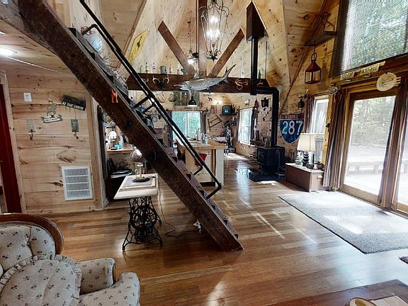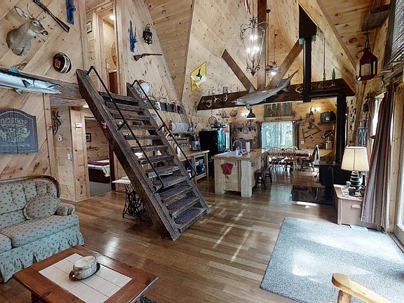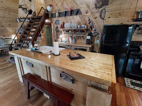 TOTALLY SECLUDED CABIN BORDERING GREENBELT, totally renovated cabin featuring rough cut lumber throughout with barn accents, living room with cathedral ceilings, kitchen with hand built island, dining area with woodstove, 3 bedrooms, 1.5 baths, one of a kind staircase, outside gazebo with bar and electric, fire pit, totally secluded bordering greenbelt