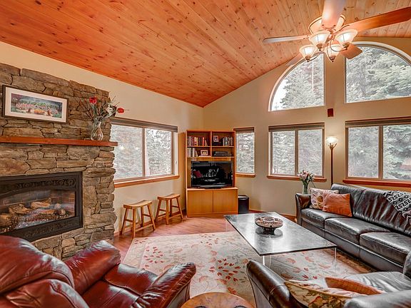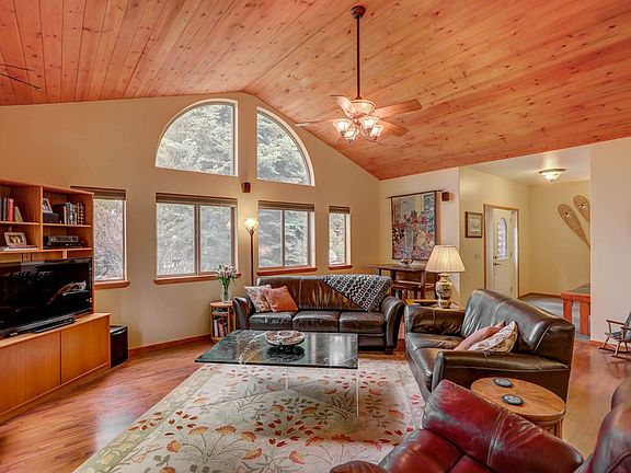 Nestled on a gorgeous private wooded lot in one of the finest neighborhoods in McCall called Aspen Ridge. Extremely well maintained custom single level home in ideal location with easy access to Payette Lake, Ponderosa and downtown McCall. This mountain rustic charming lodge-style home has an open 3bd 2ba floor plan with vaulted ceilings in the living room and an attractive rock fireplace, a light and bright inviting sunroom plus an extra room that can be used as a family room, or art studio, office or 4th bedroom. The home features an elegant master suite with a walk-in shower, radiant heated floors a large soaking tub and a fireplace. The front deck provides a perfect entry to the home and space for enjoying the mountain surroundings, in addition there is a covered back deck ideal for outside dining and entertaining. An oversized immaculate 4 car garage with built in shelving and a work bench just adds more space for recreational toys and fun mountain hobbies. This low maintenance home with natural easy-care landscaping tucked in a private wooded haven is a must see!