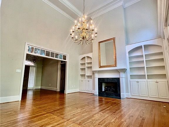 When you step into the grand foyer, you are welcomed with beautiful chandelier, loads of natural light, beautiful hardwood floors, 10 to 20 foot ceilings, and an open floor plan that is perfect for entertaining. The formal living room has floor to ceiling windows, HEAVY crown molding, gas fireplace and beautiful built in cabinetry.