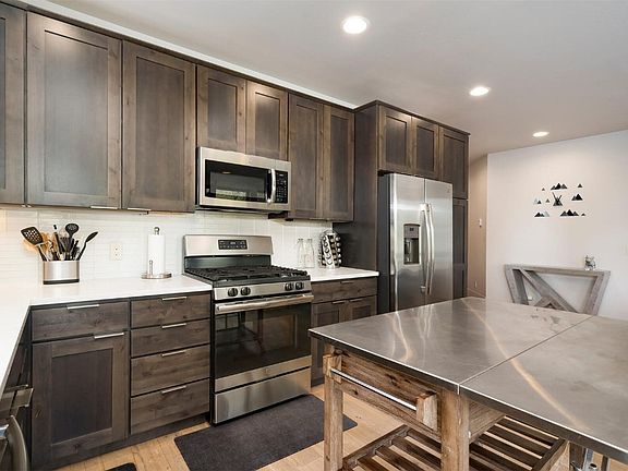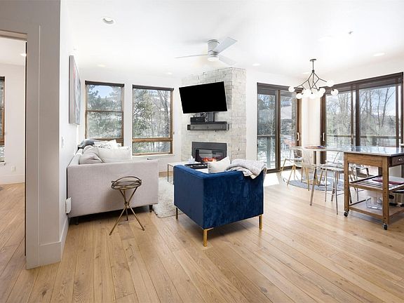 Mountain Bliss describes this unit's setting perfectly. The sight and sounds of the Blue River pour into this corner unit - tons of natural light! Upgrades including counters, backsplash, lighting, and hardwood throughout encompass all that is the mountain modern style! You do not want to miss this elegant home boasting ample storage, a one car garage, and easy access to all the fun in Silverthorne's town core including the Performing Arts Center, Restaurants, Shops, Breweries and the Bike Path!