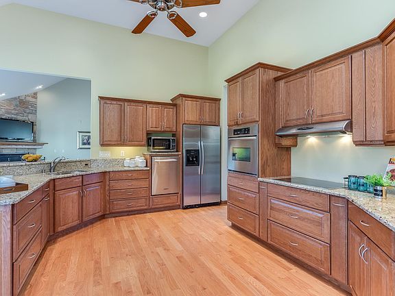 LUXURY RANCH HOME ON CUL-DE-SAC WITH STUNNING VIEWS!!! A NATURE LOVER'S DREAM HOME ON OVER AN ACRE OF LAND WATCHING WILDLIFE INCLUDING DEER AND BIRDS. ENJOY COCKTAIL HOUR ON THE DECK WHILE THE SUN SETS. CUSTOM EAT-IN KITCHEN WITH GRANITE COUNTERTOPS, TONS OF CABINETRY/STORAGE, HARDWOOD FLOORS, BREAKFAST BAR WITH STOOLS, STAINLESS STEEL APPLIANCES AND PANTRY CLOSET. STEP OUTSIDE THROUGH THE SLIDING GLASS DOORS OR SIT IN THE SUNROOM THAT'S LIGHT AND BRIGHT WITH WONDERFUL VIEWS. VAULTED FAMILY ROOM WITH SOARING CEILING, CUSTOM STONE GAS FIREPLACE AND GAS LOGS, HARDWOOD FLOORS, HUNTER DOUGLAS WINDOW TREATMENTS, CEILING FAN AND WROUGHT IRON STAIRWAY TO LOOK-OUT BASEMENT. THE MASTER BEDROOM SUITE INCLUDES WALK-IN CLOSETS WITH PROFESSIONALLY FINISHED SHELVING/CLOSET ORGANIZERS. THE MASTER BATHROOM INCLUDES DOUBLE SINK, JACUZZI TUB, CERAMIC TILE WALK-IN SHOWER WITH GLASS BLOCK, CUSTOM CABINETS AND RADIANT HEAT FLOORS!!! FIRST FLOOR LAUNDRY. THREE CAR GARAGE: ONE STALL WITH SEVEN FOOT HIGH DOOR THAT OPENS TO BACK YARD AND CONCRETE PATIO. THERE IS STAIRWAY ACCESS TO THE LOOK-OUT BASEMENT FROM THE GARAGE. THIS STAIRWAY IS EQUIPPED WITH A CHAIR-LIFT. THE BASEMENT HAS A FINISHED BATHROOM WITH RADIANT HEAT FLOORS, SHOWER AND SAUNA!!! THERE IS A WINE CELLAR IN THE BASEMENT THAT DOUBLES AS A TORNADO SHELTER. THE BASEMENT WITH NINE FOOT CEILINGS IS JUST WAITING FOR ALL OF YOUR FINISHING TOUCHES AND ALREADY HAS A KITCHEN. ALSO A WORK ROOM IS SET UP FOR ALL OF YOUR HOME PROJECTS. NEW ROOF AND GUTTERS IN 2019. THE LANDSCAPING HAS A VARIETY OF 25+ TYPES OF TREES. THERE ARE TWO DECKS WITH COMPOSITE LOW MAINTENANCE DECKING MATERIALS. CONCRETE DRIVEWAY. CLOSE TO GOLF COURSE.